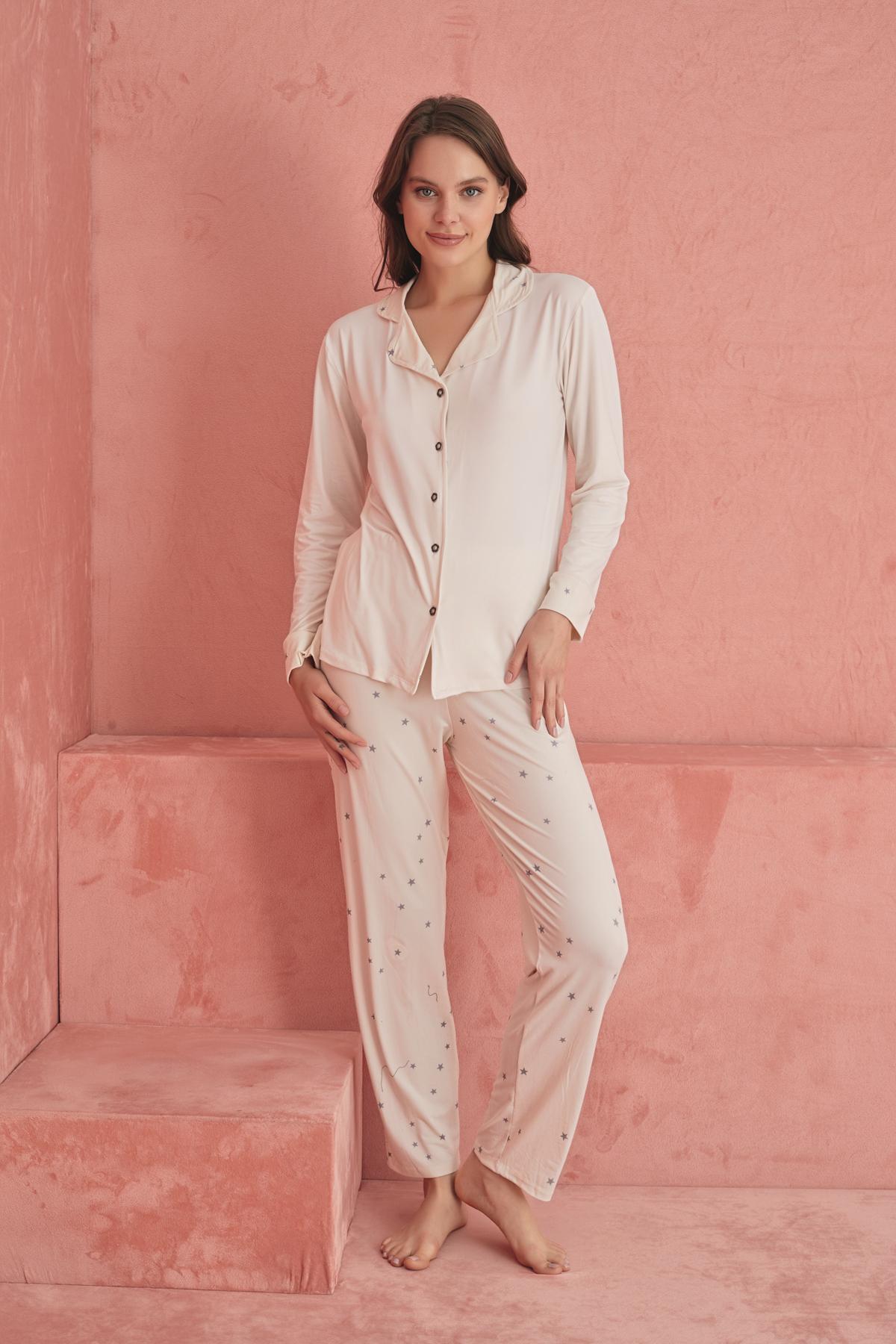 Ana sayfaPİJAMABAYAN PİJAMA TAKIMLARIBAYAN PİJAMA TAKIMELİZ 1203-20 BAYAN BAMBOO EKRU DÜĞMELİ PİJAMA TAKIMI