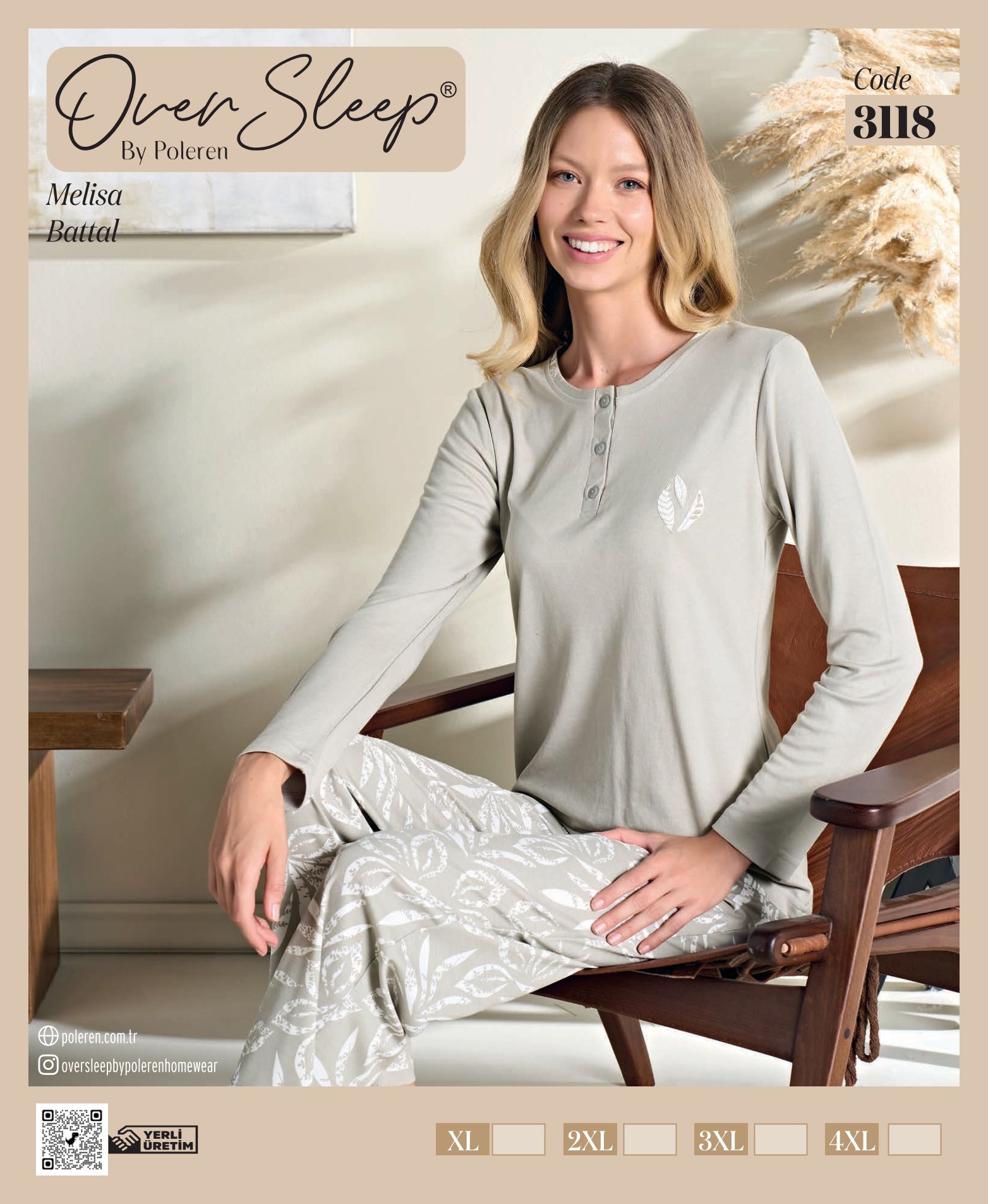 Ana sayfaPİJAMABAYAN PİJAMA TAKIMLARIBAYAN PİJAMA TAKIMOVER SLEEP BAYAN BATTAL POLEREN VİZON U-KOL PİJAMA TAKIM