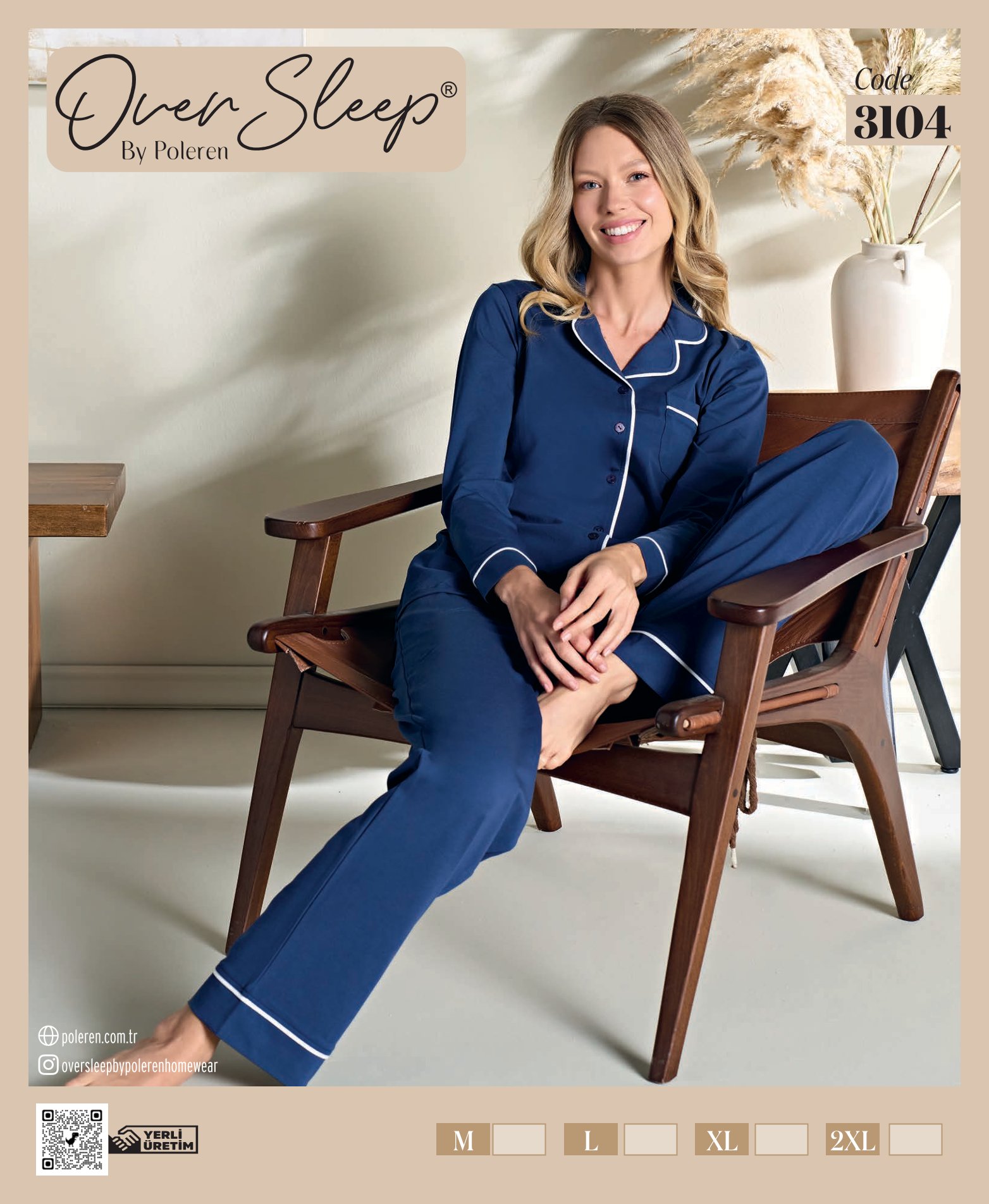 OVER SLEEP BAYAN POLEREN LACIVERT U.KOL PİJAMA TAKIM