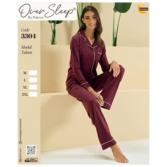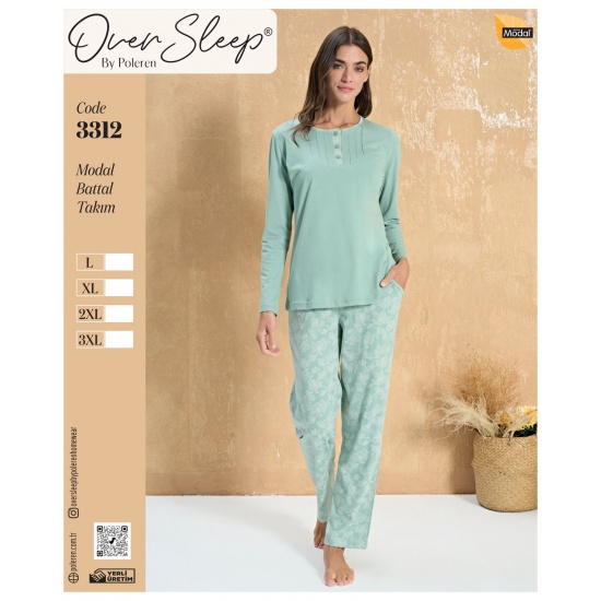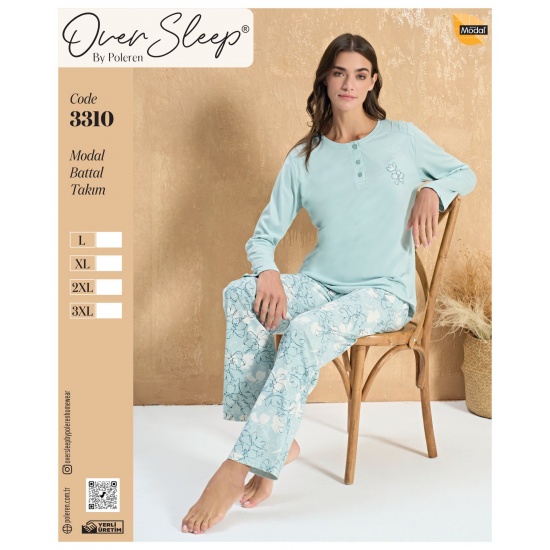 Ana sayfaPİJAMABAYAN PİJAMA TAKIMLARIBAYAN PİJAMA TAKIMOVER SLEEP BAYAN POLEREN MAVİ MODAL BATTAL PİJAMA TAKIM