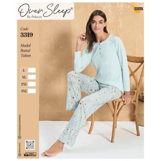 OVER SLEEP BAYAN POLEREN MAVİ MODAL BATTAL PİJAMA TAKIM