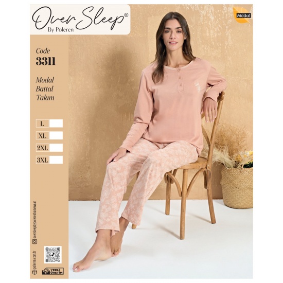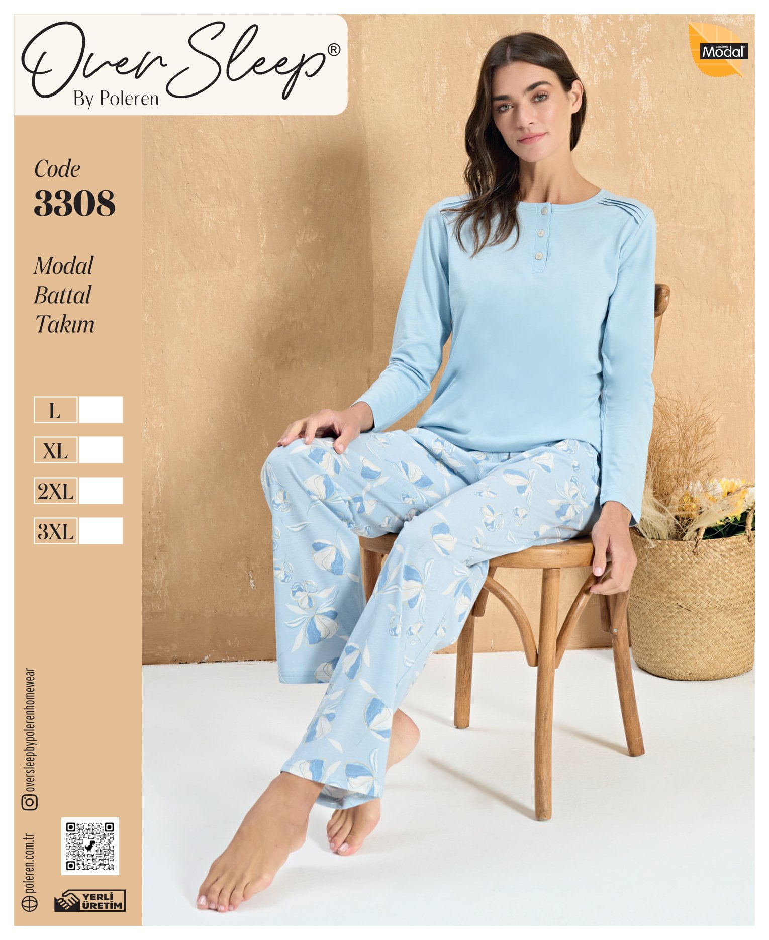Ana sayfaPİJAMABAYAN PİJAMA TAKIMLARIBAYAN PİJAMA TAKIMOVER SLEEP BAYAN POLEREN MAVİ MODAL BATTAL PİJAMA TAKIM