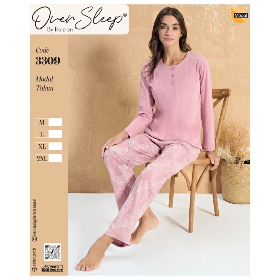 OVER SLEEP BAYAN POLEREN PEMBE PİJAMA TAKIM