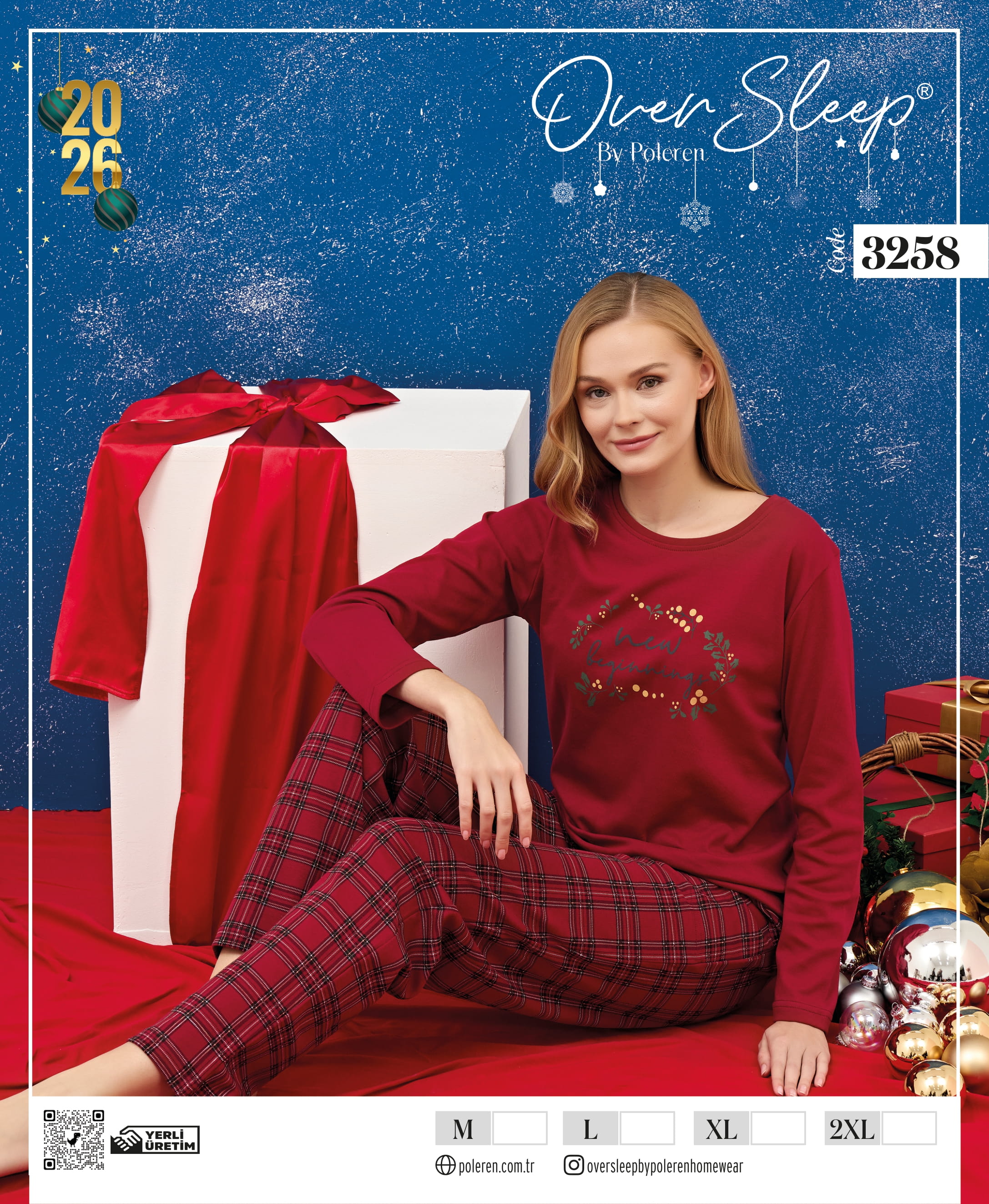 OVER SLEEP BAYAN YILBAŞI POLEREN KIRMIZI U.KOL PİJAMA TAKIM