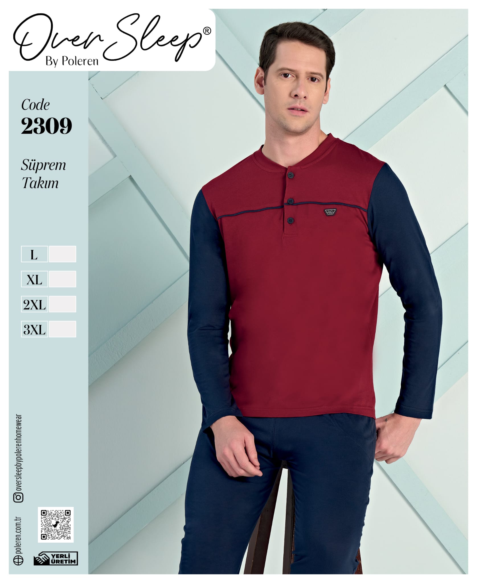 OVER SLEEP ERKEK POLEREN BORDO BATTAL PİJAMA TAKIM