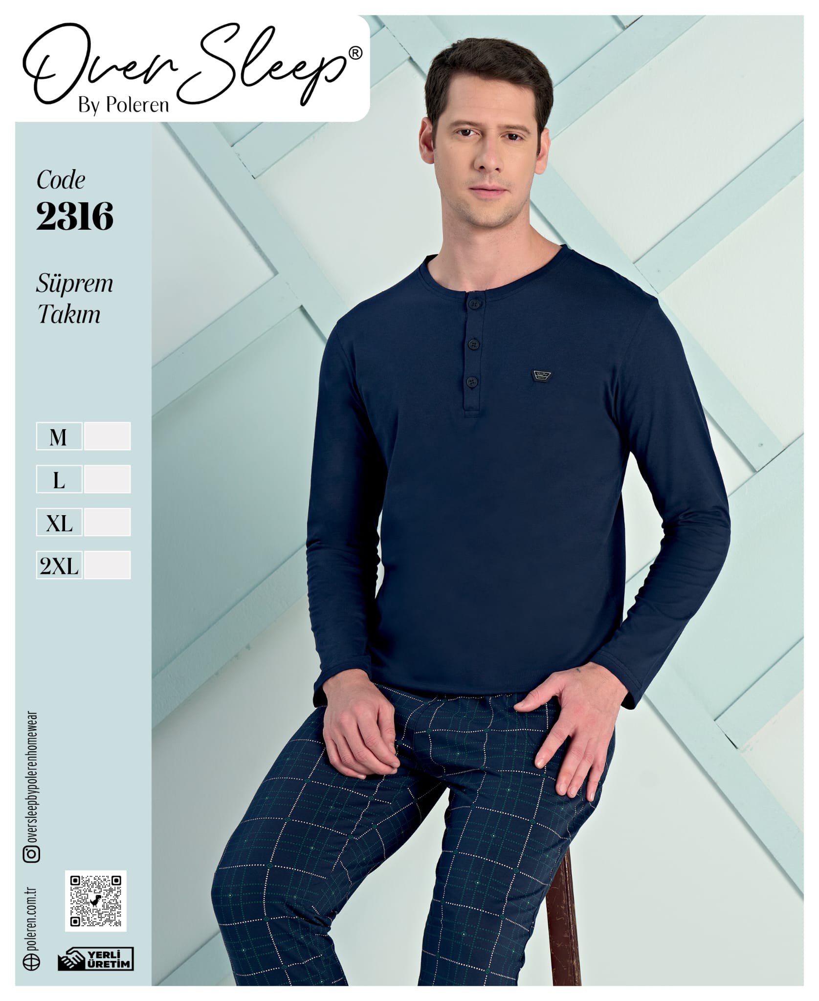 OVER SLEEP ERKEK POLEREN LACIVERT SUPREM PİJAMA TAKIM