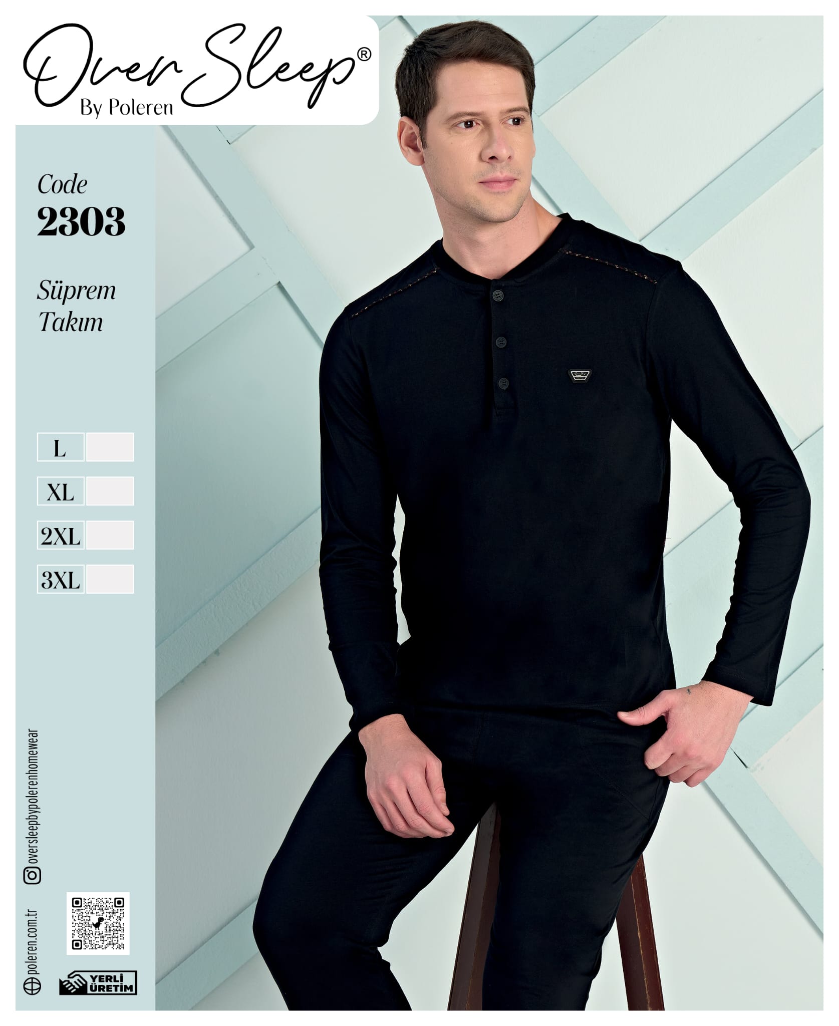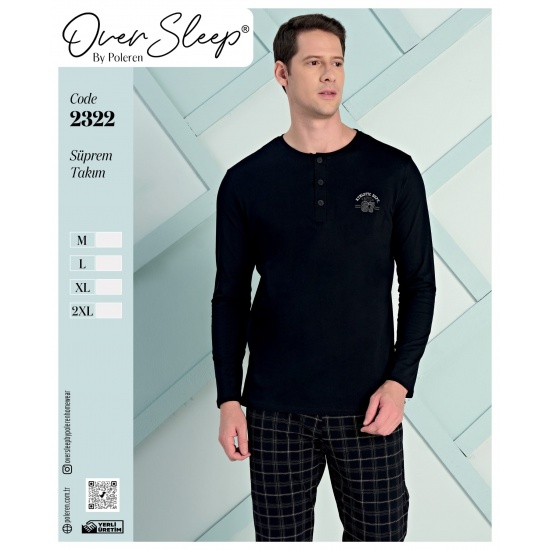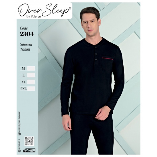 OVER SLEEP ERKEK POLEREN SİYAH BATTAL PİJAMA TAKIM