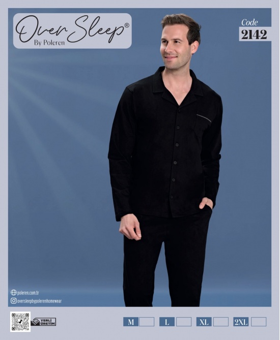 OVER SLEEP ERKEK POLEREN SİYAH PİJAMA TAKIM