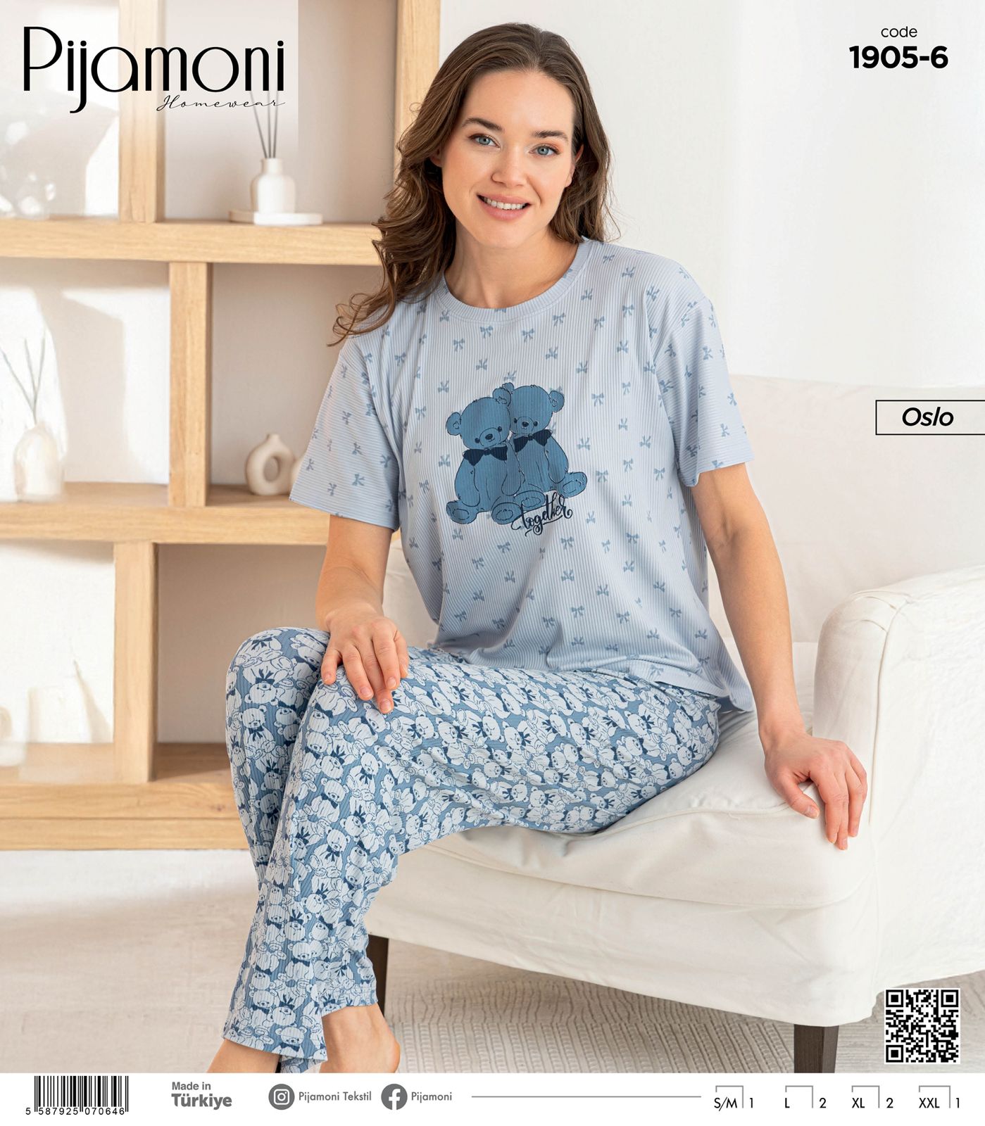 Ana sayfaPİJAMABAYAN PİJAMA TAKIMLARIBAYAN KISA KOLLU PİJAMALARPIJAMONİ 1905-6 BAYAN OSLO KISA KOL ALT UZUN PİJAMA TAKIM