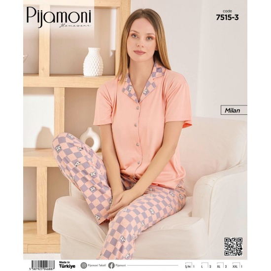 Ana sayfaPİJAMABAYAN PİJAMA TAKIMLARIBAYAN KISA KOLLU PİJAMALARPIJAMONİ 7515-5 BAYAN MİLAN BASKILI K.KOL PİJAMA TAKIM