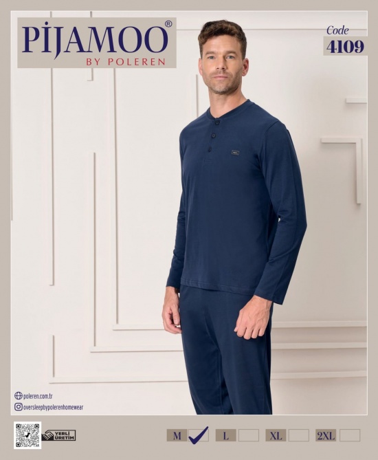 PİJAMOO ERKEK POLEREN LACIVERT U.KOL PİJAMA TAKIM